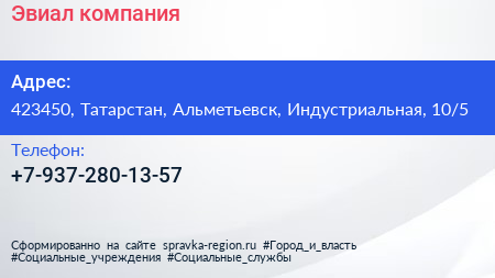 Эвиал, компания по адресу 423450, Татарстан, Альметьевск, Индустриальная, 10/5 в дальнейшем Организация, размещена в следующих категориях: