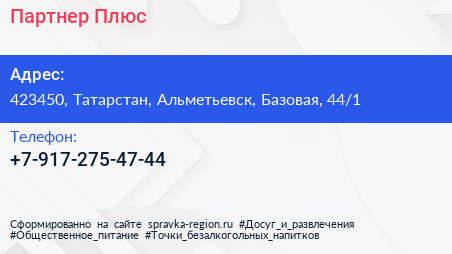 Партнер Плюс по адресу 423450, Татарстан, Альметьевск, Базовая, 44/1 в дальнейшем Организация, размещена в следующих категориях: