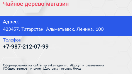 Чайное дерево, магазин по адресу 423457, Татарстан, Альметьевск, Ленина, 100 в дальнейшем Организация, размещена в следующих категориях: