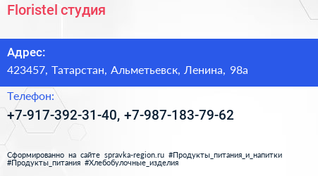 Floristel, студия по адресу 423457, Татарстан, Альметьевск, Ленина, 98а в дальнейшем Организация, размещена в следующих категориях: