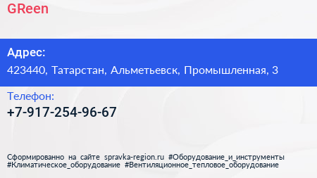 GReen по адресу 423440, Татарстан, Альметьевск, Промышленная, 3 в дальнейшем Организация, размещена в следующих категориях: