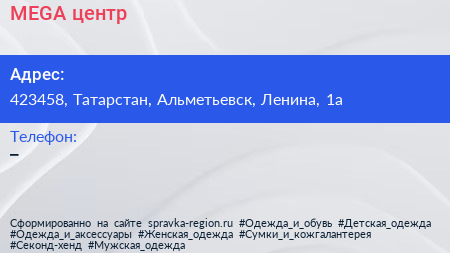 MEGA центр по адресу 423458, Татарстан, Альметьевск, Ленина, 1а в дальнейшем Организация, размещена в следующих категориях: