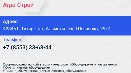 Агро-Строй по адресу 423461, Татарстан, Альметьевск, Шевченко, 25/7 в дальнейшем Организация, размещена в следующих категориях: