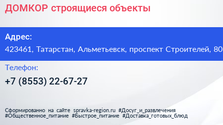ДОМКОР, строящиеся объекты по адресу 423461, Татарстан, Альметьевск, проспект Строителей, 80 в дальнейшем Организация, размещена в следующих категориях:
