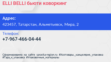 ELLI BELLI, бьюти-коворкинг по адресу 423457, Татарстан, Альметьевск, Мира, 2 в дальнейшем Организация, размещена в следующих категориях: