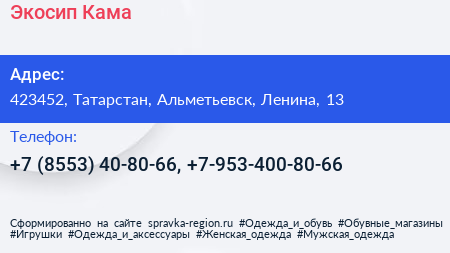 Экосип Кама по адресу 423452, Татарстан, Альметьевск, Ленина, 13 в дальнейшем Организация, размещена в следующих категориях: