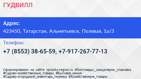 ГУДВИЛЛ по адресу 423450, Татарстан, Альметьевск, Полевая, 1а/3 в дальнейшем Организация, размещена в следующих категориях: