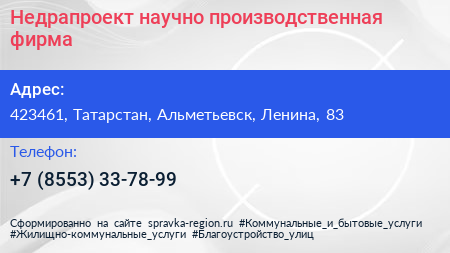 Недрапроект, научно-производственная фирма по адресу 423461, Татарстан, Альметьевск, Ленина, 83 в дальнейшем Организация, размещена в следующих категориях:
