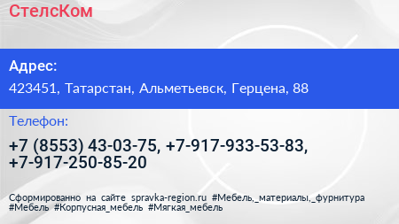 СтелсКом по адресу 423451, Татарстан, Альметьевск, Герцена, 88 в дальнейшем Организация, размещена в следующих категориях: