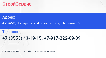 СтройСервис по адресу 423450, Татарстан, Альметьевск, Цеховая, 5 в дальнейшем Организация, размещена в следующих категориях: