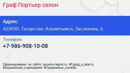 Граф Портьер, салон по адресу 423450, Татарстан, Альметьевск, Заслонова, 6 в дальнейшем Организация, размещена в следующих категориях: