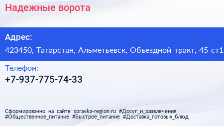 Надежные ворота по адресу 423450, Татарстан, Альметьевск, Объездной тракт, 45 ст1 в дальнейшем Организация, размещена в следующих категориях: