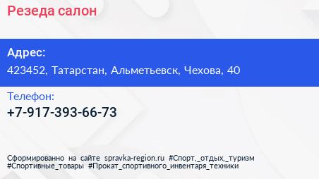 Резеда, салон по адресу 423452, Татарстан, Альметьевск, Чехова, 40 в дальнейшем Организация, размещена в следующих категориях: