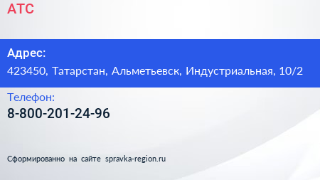 АТС по адресу 423450, Татарстан, Альметьевск, Индустриальная, 10/2 в дальнейшем Организация, размещена в следующих категориях: