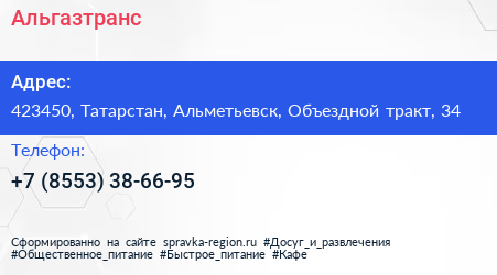 Альгазтранс по адресу 423450, Татарстан, Альметьевск, Объездной тракт, 34 в дальнейшем Организация, размещена в следующих категориях: