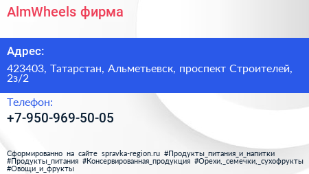 AlmWheels, фирма по адресу 423403, Татарстан, Альметьевск, проспект Строителей, 2з/2 в дальнейшем Организация, размещена в следующих категориях: