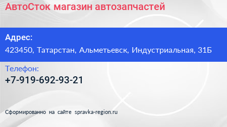 АвтоСток, магазин автозапчастей по адресу 423450, Татарстан, Альметьевск, Индустриальная, 31Б в дальнейшем Организация, размещена в следующих категориях:
