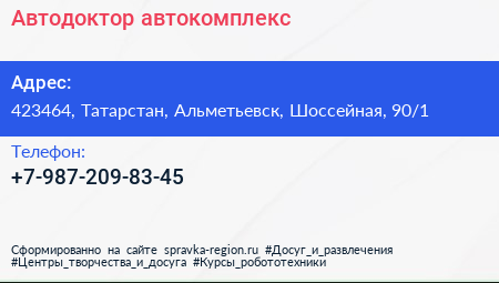 Автодоктор, автокомплекс по адресу 423464, Татарстан, Альметьевск, Шоссейная, 90/1 в дальнейшем Организация, размещена в следующих категориях: