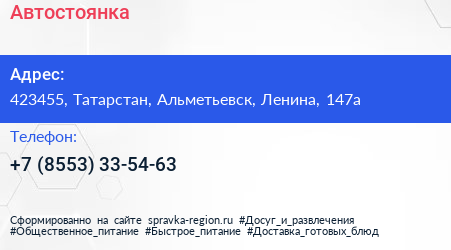 Автостоянка по адресу 423455, Татарстан, Альметьевск, Ленина, 147а в дальнейшем Организация, размещена в следующих категориях: