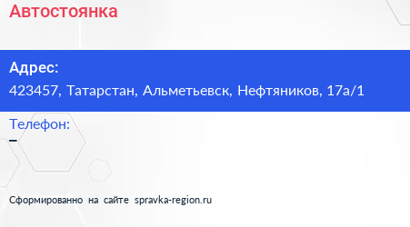 Адрес: Татарстан, Альметьевск, Полевая, 17/3