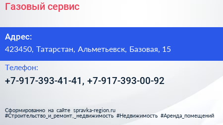 Газовый сервис по адресу 423450, Татарстан, Альметьевск, Базовая, 15 в дальнейшем Организация, размещена в следующих категориях: