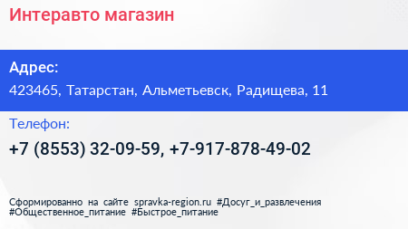 Интеравто, магазин по адресу 423465, Татарстан, Альметьевск, Радищева, 11 в дальнейшем Организация, размещена в следующих категориях: