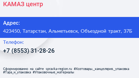 КАМАЗ центр по адресу 423450, Татарстан, Альметьевск, Объездной тракт, 37Б в дальнейшем Организация, размещена в следующих категориях: