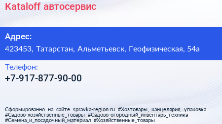 Kataloff, автосервис по адресу 423453, Татарстан, Альметьевск, Геофизическая, 54а в дальнейшем Организация, размещена в следующих категориях: