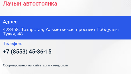 Лачын, автостоянка по адресу 423458, Татарстан, Альметьевск, проспект Габдуллы Тукая, 48 в дальнейшем Организация, размещена в следующих категориях: