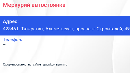 Меркурий, автостоянка по адресу 423461, Татарстан, Альметьевск, проспект Строителей, 49 в дальнейшем Организация, размещена в следующих категориях: