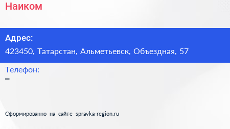 Наиком по адресу 423450, Татарстан, Альметьевск, Объездная, 57 в дальнейшем Организация, размещена в следующих категориях: