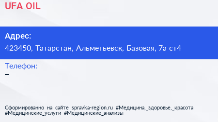 UFA OIL по адресу 423450, Татарстан, Альметьевск, Базовая, 7а ст4 в дальнейшем Организация, размещена в следующих категориях: