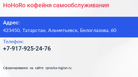 HoHoRo, кофейня самообслуживания по адресу 423450, Татарстан, Альметьевск, Белоглазова, 60 в дальнейшем Организация, размещена в следующих категориях: