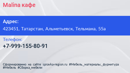 Malina, кафе по адресу 423451, Татарстан, Альметьевск, Тельмана, 55а в дальнейшем Организация, размещена в следующих категориях: