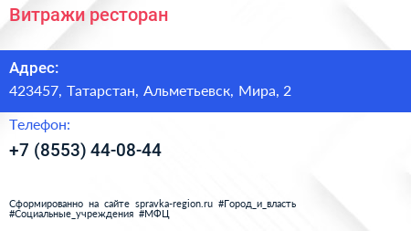 Витражи, ресторан по адресу 423457, Татарстан, Альметьевск, Мира, 2 в дальнейшем Организация, размещена в следующих категориях: