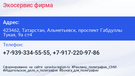 Экосервис, фирма по адресу 423462, Татарстан, Альметьевск, проспект Габдуллы Тукая, 9а ст4 в дальнейшем Организация, размещена в следующих категориях: