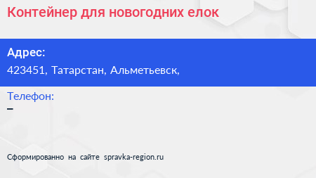 Контейнер для новогодних елок по адресу 423451, Татарстан, Альметьевск, в дальнейшем Организация, размещена в следующих категориях: