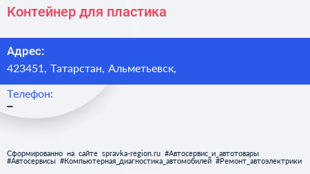 Контейнер для пластика по адресу 423451, Татарстан, Альметьевск, в дальнейшем Организация, размещена в следующих категориях: