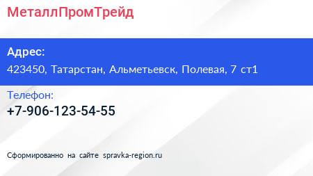 МеталлПромТрейд по адресу 423450, Татарстан, Альметьевск, Полевая, 7 ст1 в дальнейшем Организация, размещена в следующих категориях: