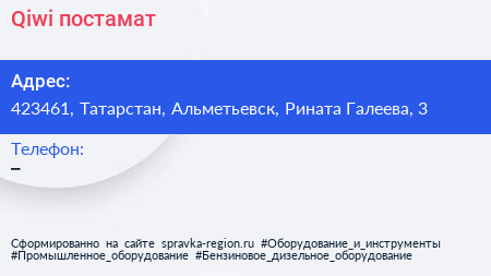 Qiwi, постамат по адресу 423461, Татарстан, Альметьевск, Рината Галеева, 3 в дальнейшем Организация, размещена в следующих категориях:
