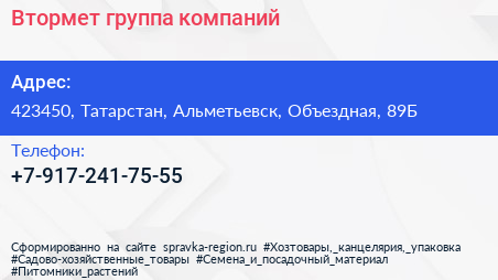 Втормет, группа компаний по адресу 423450, Татарстан, Альметьевск, Объездная, 89Б в дальнейшем Организация, размещена в следующих категориях: