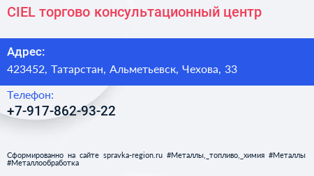 CIEL, торгово-консультационный центр по адресу 423452, Татарстан, Альметьевск, Чехова, 33 в дальнейшем Организация, размещена в следующих категориях: