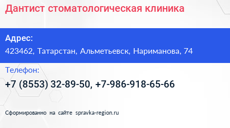 Дантист, стоматологическая клиника по адресу 423462, Татарстан, Альметьевск, Нариманова, 74 в дальнейшем Организация, размещена в следующих категориях: