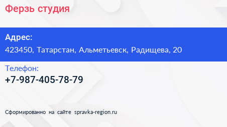 Ферзь, студия по адресу 423450, Татарстан, Альметьевск, Радищева, 20 в дальнейшем Организация, размещена в следующих категориях: