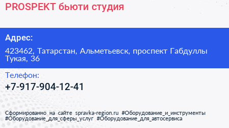#PROSPEKT, бьюти-студия по адресу 423462, Татарстан, Альметьевск, проспект Габдуллы Тукая, 36 в дальнейшем Организация, размещена в следующих категориях: