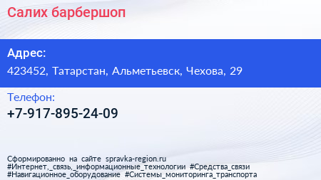 Салих, барбершоп по адресу 423452, Татарстан, Альметьевск, Чехова, 29 в дальнейшем Организация, размещена в следующих категориях: