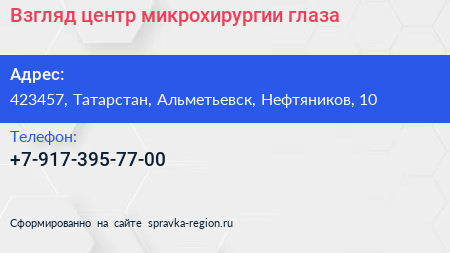 Взгляд, центр микрохирургии глаза по адресу 423457, Татарстан, Альметьевск, Нефтяников, 10 в дальнейшем Организация, размещена в следующих категориях: