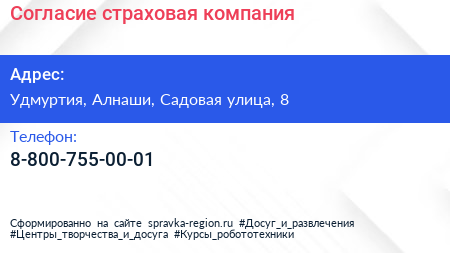 Согласие, страховая компания по адресу Удмуртия, Алнаши, Садовая улица, 8 в дальнейшем Организация, размещена в следующих категориях: