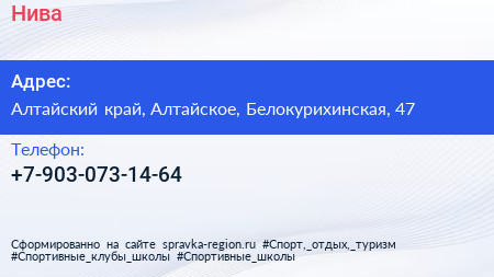 Нива по адресу Алтайский край, Алтайское, Белокурихинская, 47 в дальнейшем Организация, размещена в следующих категориях:
