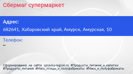 Сбермаг, супермаркет по адресу 682641, Хабаровский край, Амурск, Амурская, 10 в дальнейшем Организация, размещена в следующих категориях: